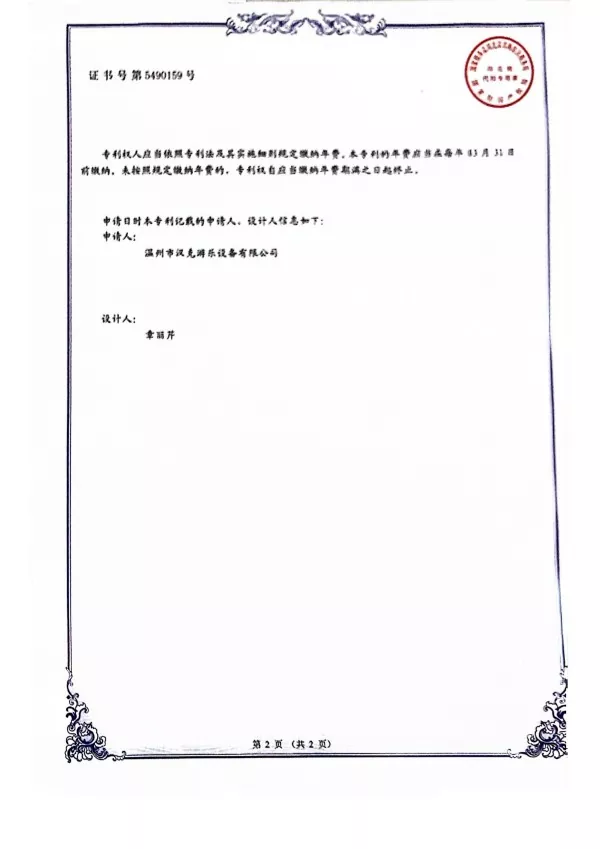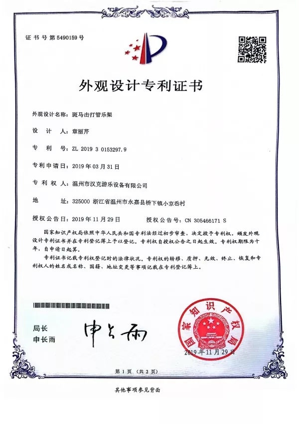 په ورته وخت کې، د هانک د ملکیت محصول په توګه، موږ په 2019 کې د زیبرا شکل پرکوشن وسیلې سټینډ لپاره د ډیزاین پیټینټ سند لپاره غوښتنه وکړه او د چین د فکري ملکیت دفتر څخه یې تصویب ترلاسه کړ.